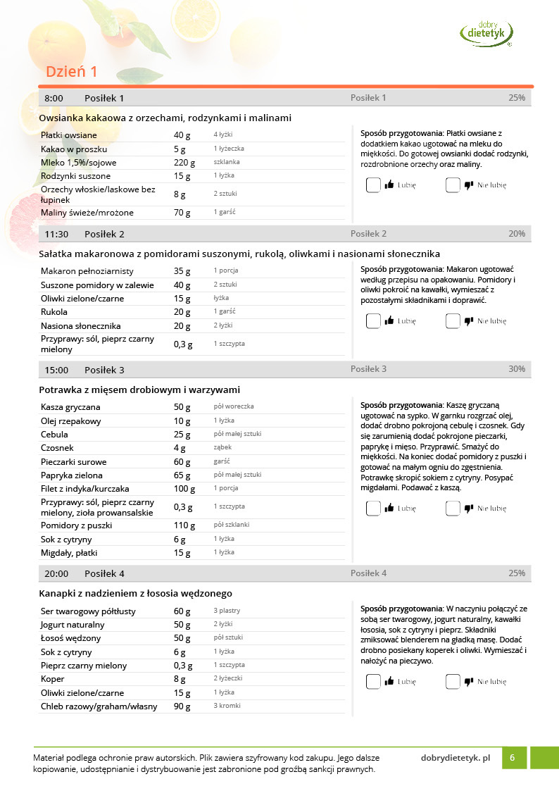 Jak będzie wyglądać zakupiony program żywieniowy?
