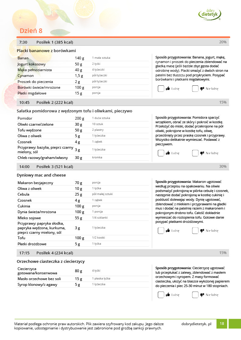 w formie precyzyjnych jadłospisów wielodniowych (na każdy dzień miesiąca jest opracowany osobny jadłospis). Tutaj nie musisz zastanawiać się co zjeść każdego dnia, gdyż będziesz mieć dokładnie wszystko rozplanowane.