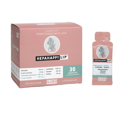 Synergizm ostropestu, karczocha, fosfolipidów, choliny i tauryny w postaci żelu liposomalnego.