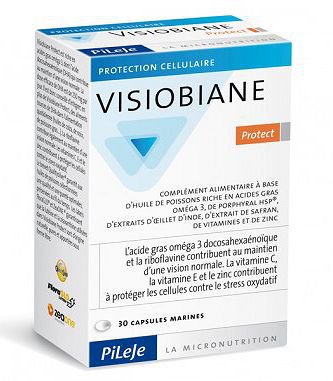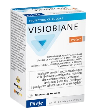 Visiobiane Ochrona przyczynia się do utrzymania sprawnego widzenia, a także do ochrony komórek przed stresem oksydacyjnym. Olej rybny zawarty w Visiobiane Ochrona dostarcza kwasów Omega 3, DHA oraz EPA. DHA przyczynia się do utrzymania sprawnego wzroku. Korzystny efekt uzyskuje się dostarczając dziennie 250 mg DHA. Witaminy B2, C i E przyczyniają się do ochrony komórek przed stresem oksydacyjnym. Zawarty wyciąg z płatków aksamitki stosowany jest w przemyśle rolno - spożywczym i pozyskuje się z niego luteinę. Luteina występuje w ilości 1 grama na kilogram kwiatów aksamitki, czyli 1000 ppm*. Aksamitka nie zawiera poważnych alergenów, podobnie jak olej z nasion krokosza, w którym luteina jest zawieszona. * 1 ppm (parts per million) = 1mg/1kg. Rekomendowany do suplementacji w: profilaktyce AMD (degradacji plamki związanej z wiekiem), przypadku częstej pracy przy komputerze, zapewnieniu właściwych funkcji narządu wzroku. Przeciwwskazania: nie stosować u dzieci poniżej 5 roku życia. Nie zawiera glutenu ani laktozy.Rekomendowany do suplementacji w: